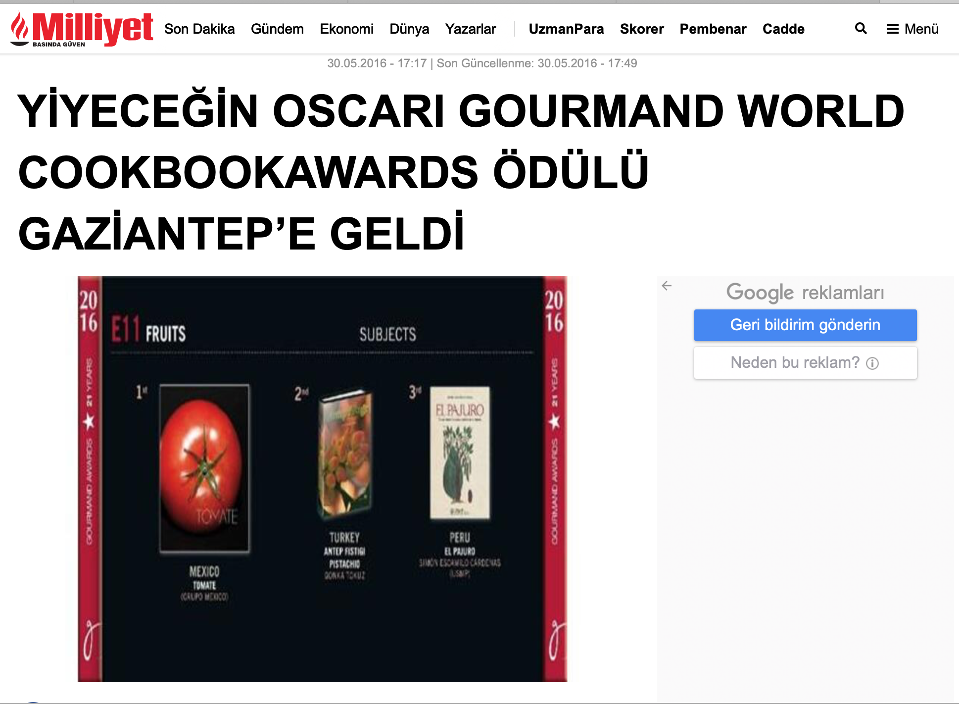 il Alt?n Antep F?st??? kitab?, dünyada yiyece?in oscar? olarak nitelendirilen Gourmand World CookbookAwards ödülünü kazand?.